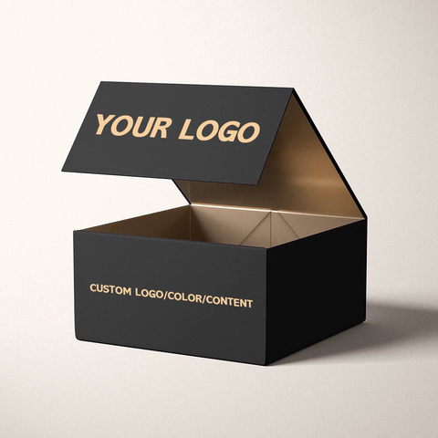 Caja de papel de regalo magnética con logotipo personalizado, cartón duro, embalaje plegado de lujo, caja rígida plegable negra